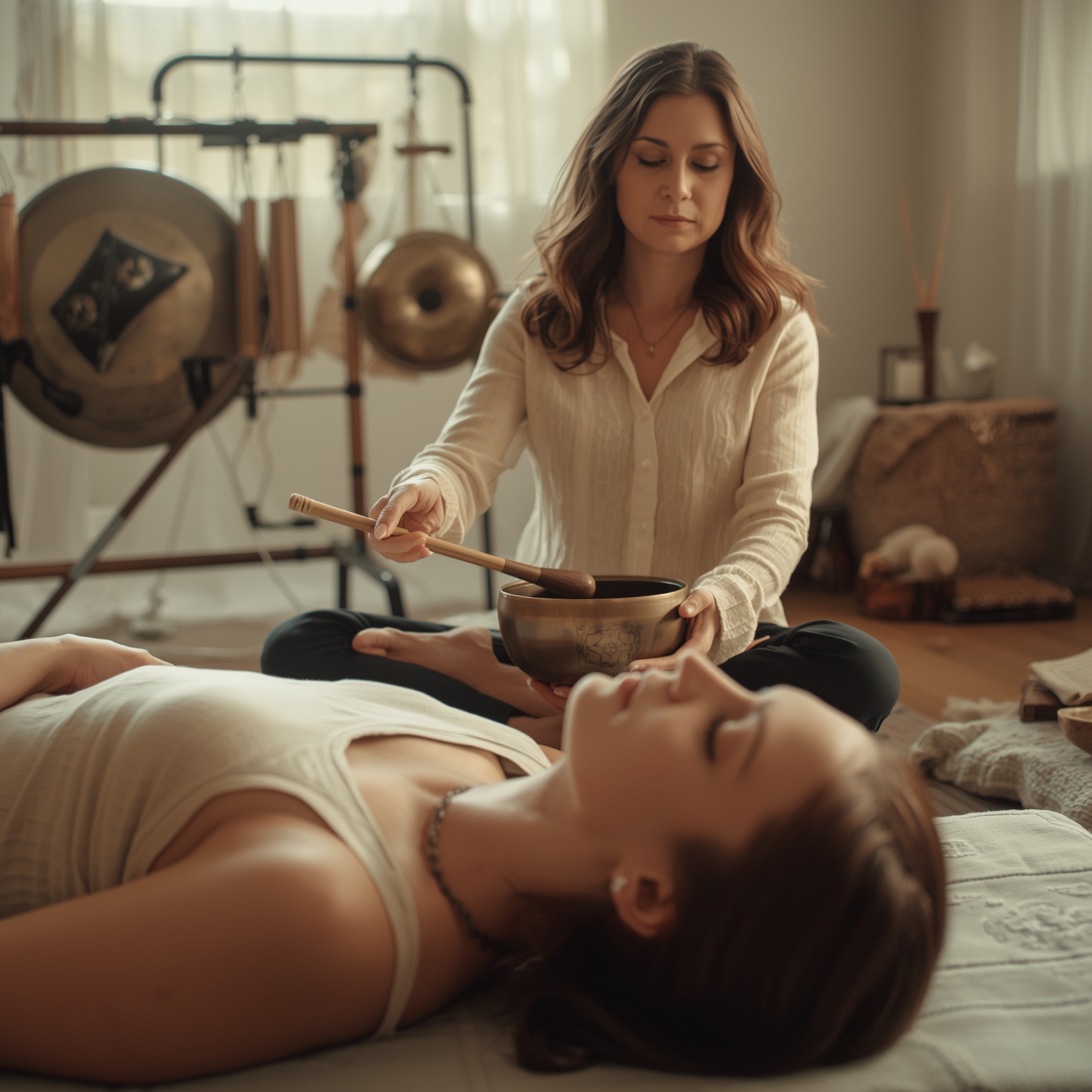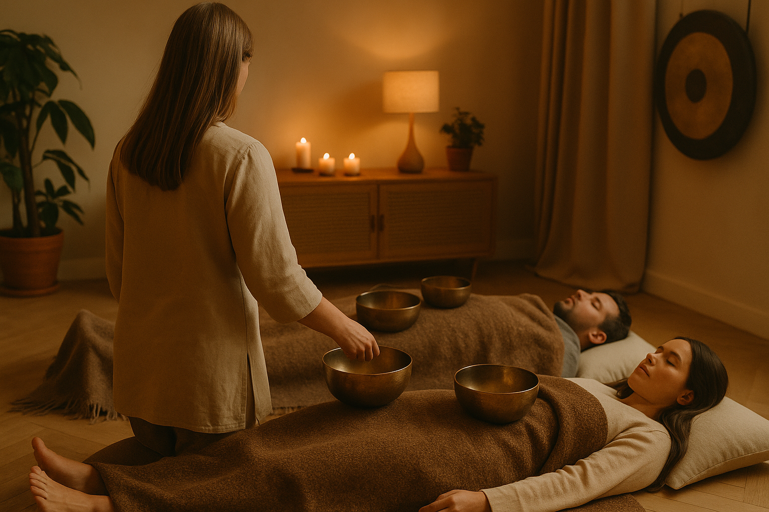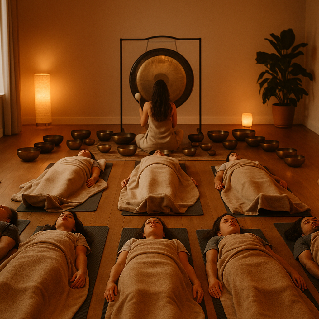 Zanurz się w oceanie kojących dźwięków gongów, mis śpiewających i dzwonków, aby osiągnąć stan głębokiego relaksu i równowagi